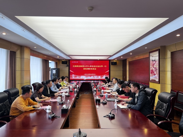 4月9日下午,江西科技师范大学人事处处长龙安华一行来我校调研交流。座谈会在广兰校园行政楼301会议室举行,我校人事处处长张红军,副处长余燕、韩善楚及相关科室负责同志参加。